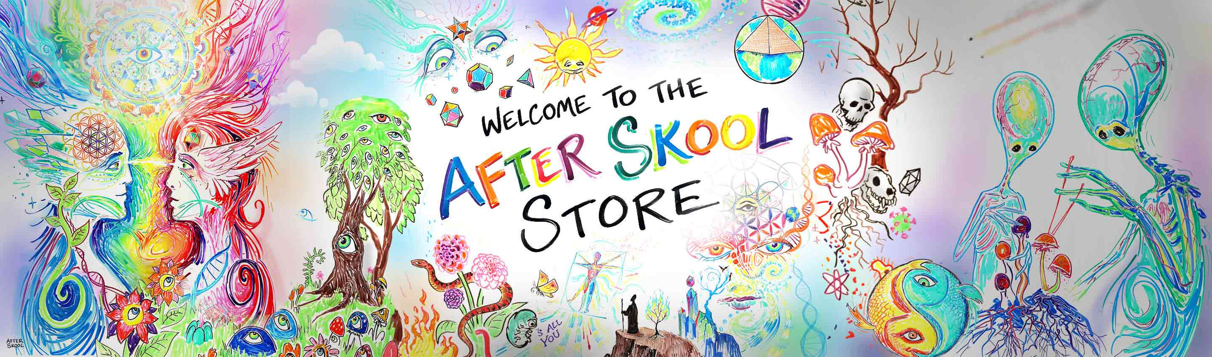 This image is called Ascension of the Present. The left side of the image represents a painful past and the right side represents a fearful future. The middle represents a transcendence beyond time and suffering into the eternal present.