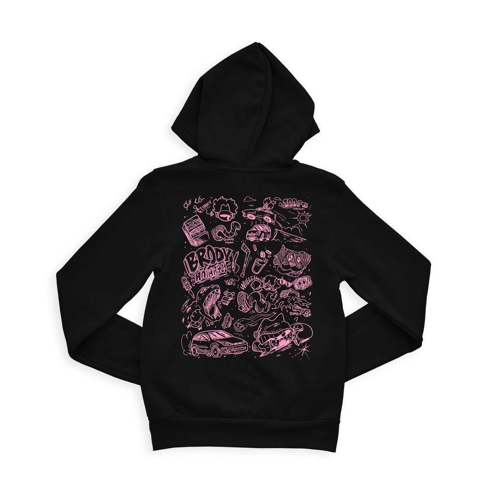 Embodying a page torn right out of Brody's sketchbook, this beautiful and chaotic design combines countless elements of BrodyAnimates' videos onto a wearable form. With references going back years, this one's for the dedicated fans who happen to have great taste in fashion.